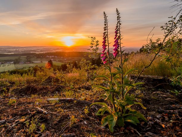 Verlassen Sie nun den Burgparkplatz der Sintfeld-Höhenweg Markierung (ein weißes „S“ auf rotem Hintergrund) folgend in Richtung Almetal/Ahden. Sie kehren der Wewelsburg nun den Rücken zu und erhaschen einen herrlichen Ausblick in Richtung Ahden und dem Paderborn/Lippstadt Airport. Wir folgen dem Sintfeld-Höhenweg ca. zwei Kilometer bis zum Ahdener Grund. Auf dem „Ahdener Grund“ wandern wir mit einem langgezogenen Anstieg ca. 1,5 Kilometer, unterqueren die Autobahn A44 und biegen an den "Siebeneichen“ rechts ab. Dem A1 etwa 1,5 km folgend, halten wir uns nach der Überquerung der Autobahn, an der nächsten Gabelung links. Sie befinden sich nun auf dem Urbanusweg. Nach ca. 300 m biegen Sie rechts auf den A5 ins Almetal ab. Im Tal angekommen folgen Sie links dem A3 bis zur Kluskapelle. Dort wandern wir links an der Kapelle den Heinbergweg hinauf.