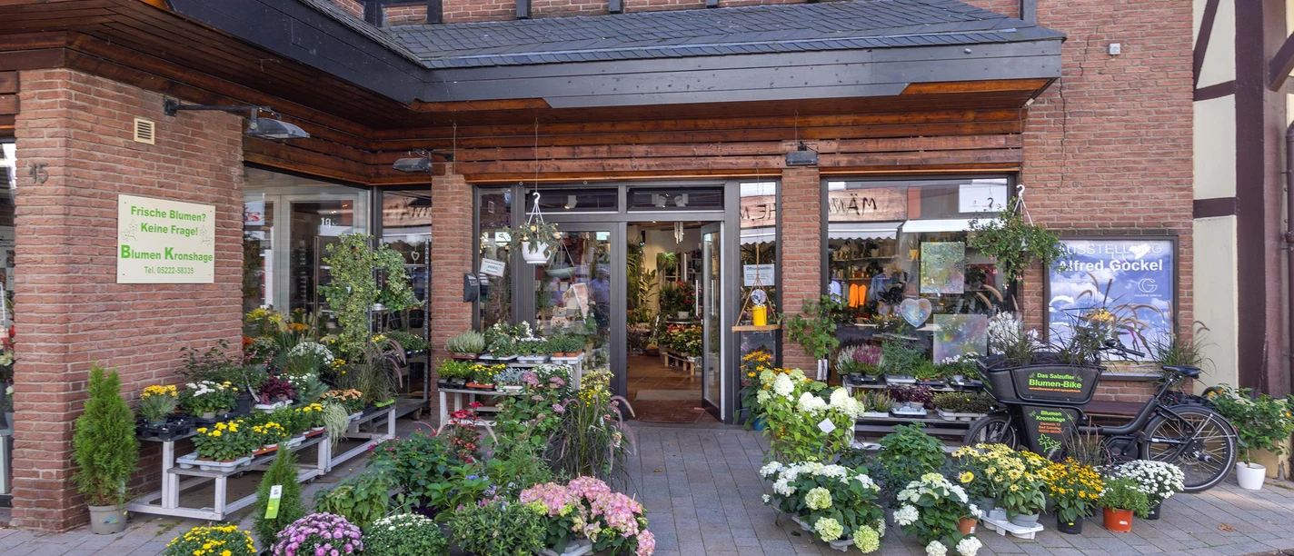 Bij Blumen Kronshage vind je alle soorten bloemisterij in het centrum van Bad Salzuflen. De drie zussen Ute, Sabine en Bettina Kronshage adviseren je en maken bloemdecoraties naar jouw smaak. Er is ook een bloemenabonnement en een bezorgservice voor het hele stadsgebied.