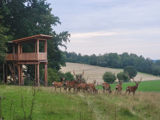 Het wildobservatieplatform is een van de vele mogelijkheden in het Dierendorp om huisdieren en wilde dieren in hun natuurlijke omgeving te observeren en meer te leren over de diersoorten en hun levenswijze. Tot het gevarieerde aanbod in het Dierendorp behoren het wildobservatiestation, het bijenhuis met het bijenavonturenpad en de natuurgerichte avonturenspeelplaats en rustplaats naast de stal van Schwelentrup.