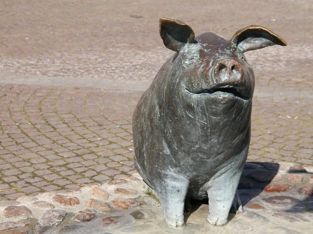 De fontein, ook wel bekend als de varkensfontein, verwijst naar de traditionele vleesverwerking in de stad Versmold. Ham, spek en Mettwurst waren al in de 19e eeuw exporthits van Versmold. Het marktplein is de bakermat van de Versmoldse vleesindustrie. Op het plein staat nu een woon- en bedrijfsgebouw.