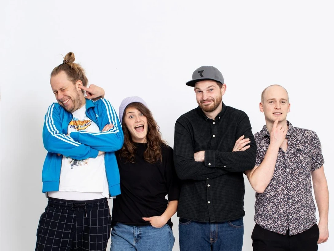 Okay, eigenlijk doen Leonie, Nils, Christoph en Tobi alleen aan improvisatietheater. Soms luid, soms rustig, dansend of zingend, soms grappig en maf en soms pinken ze een traantje weg. Tobi houdt van een rondje champagne en Christoph geeft de voorkeur aan de Buddenbrooks. Leonie viert trashy discoballen en Nils heeft veel te veel bordspellen.